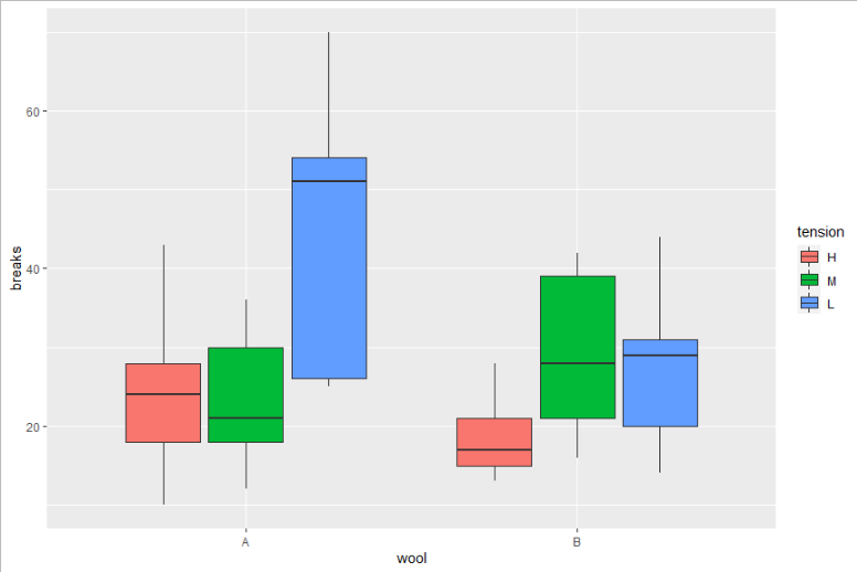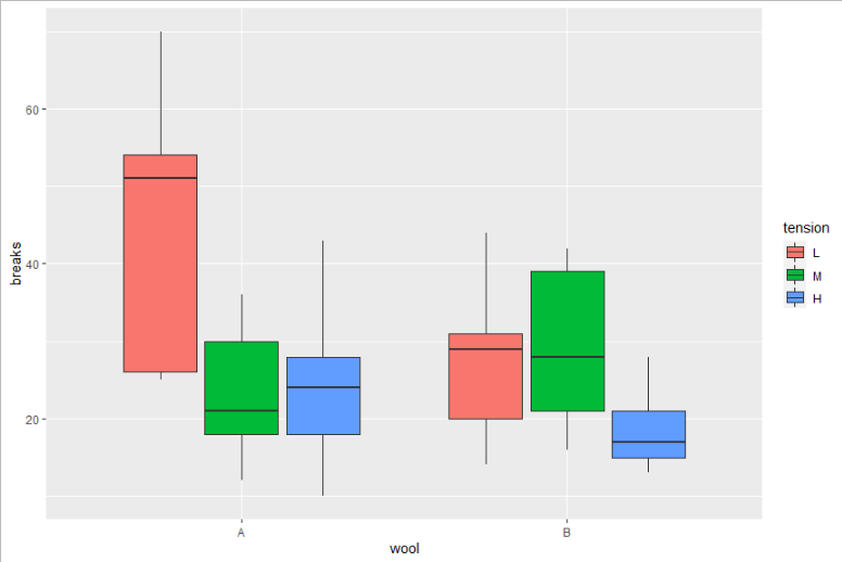 geom_boxplot(data=my_data,aes(x=wool,y=breaks,fill=tension))